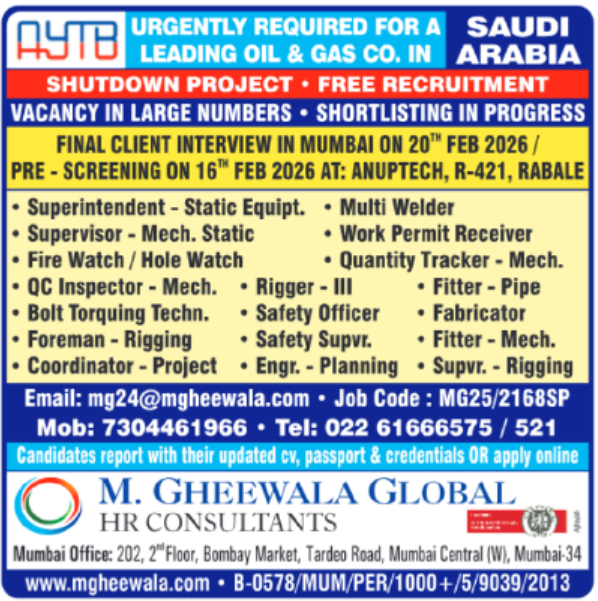 π¨ Leading Oil & Gas Company β Vacancy in Large Numbers