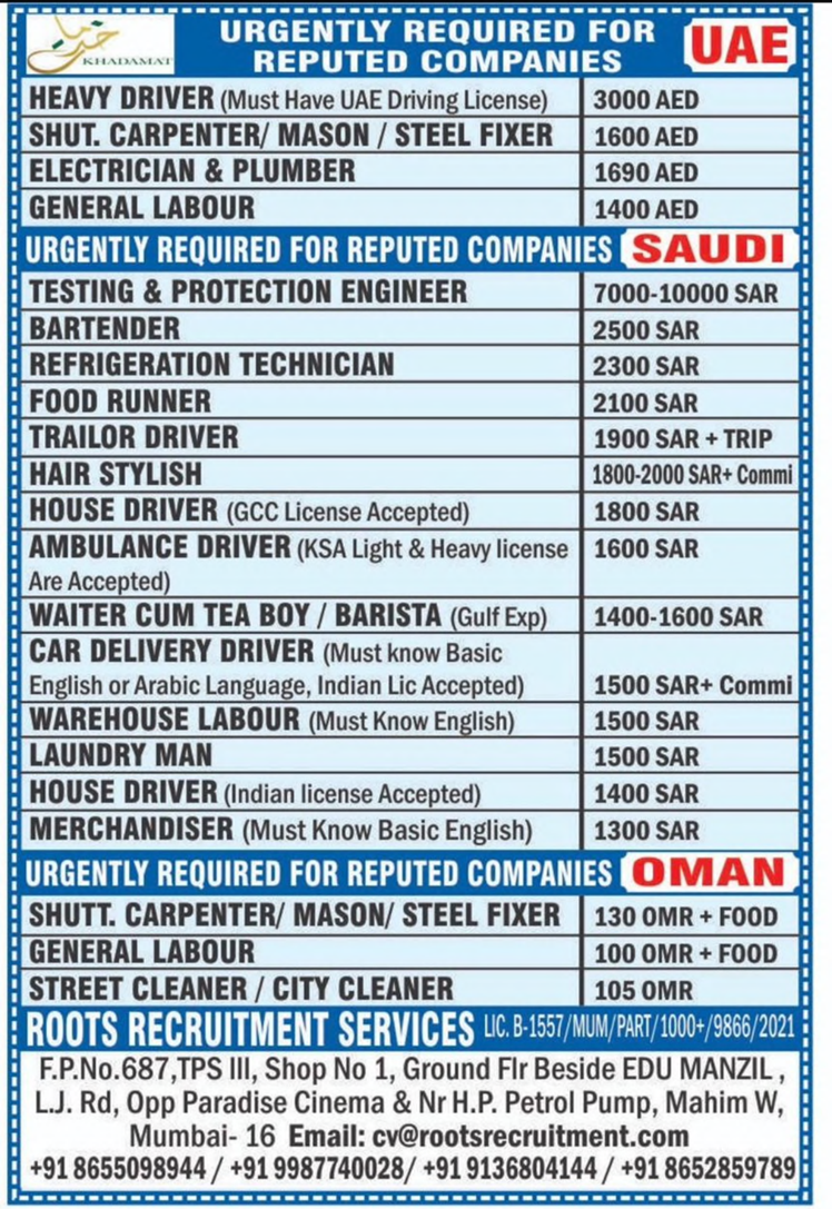 Immediate hiring for reputed companies across the Gulf.