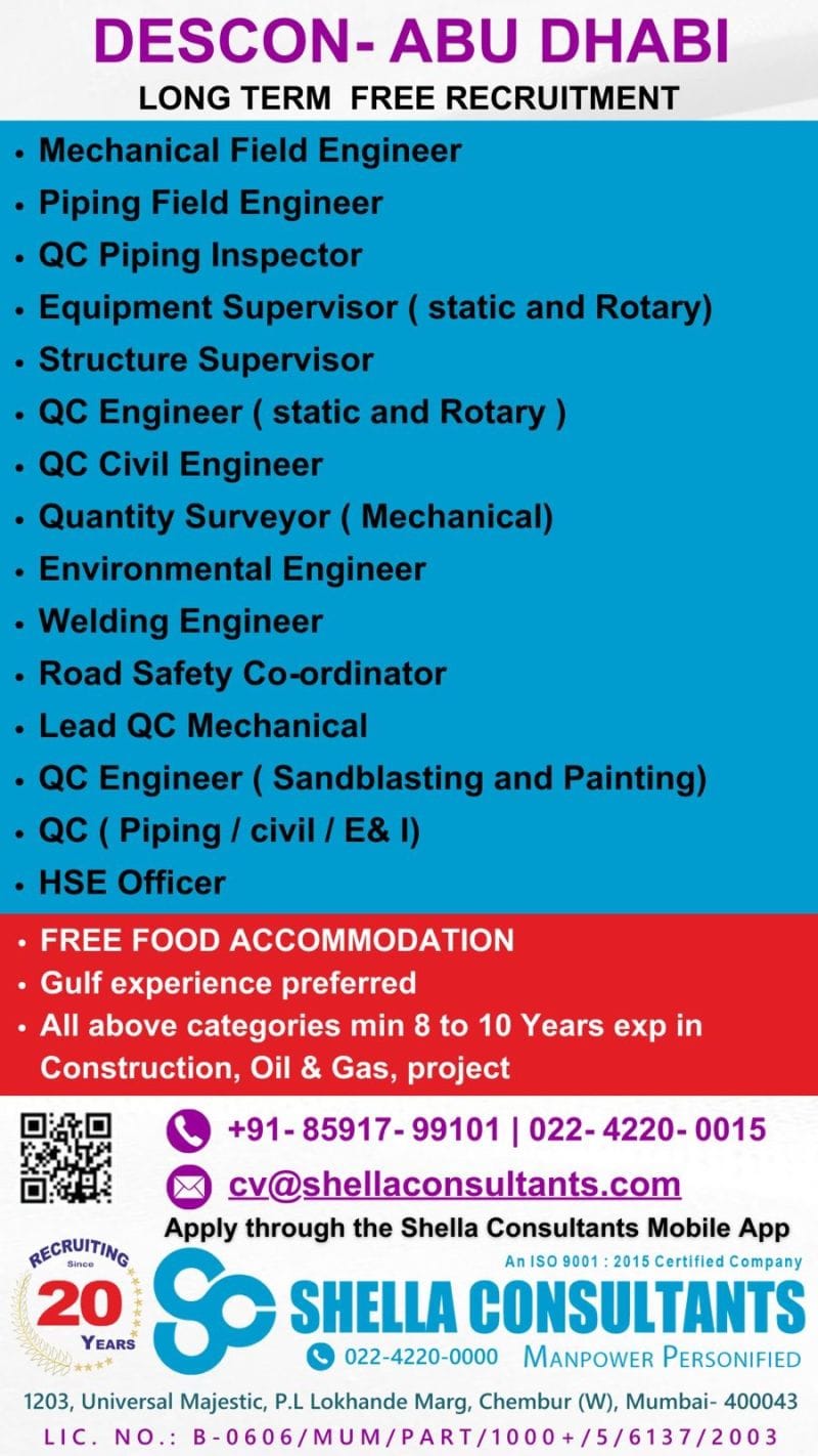 Are you a skilled professional looking for a new challenge in Abu Dhabi? Look no further! Shella Consultants is offeringย free recruitment servicesย for various positions in Abu Dhabi, and we’ve got the details for you.ย ![]()