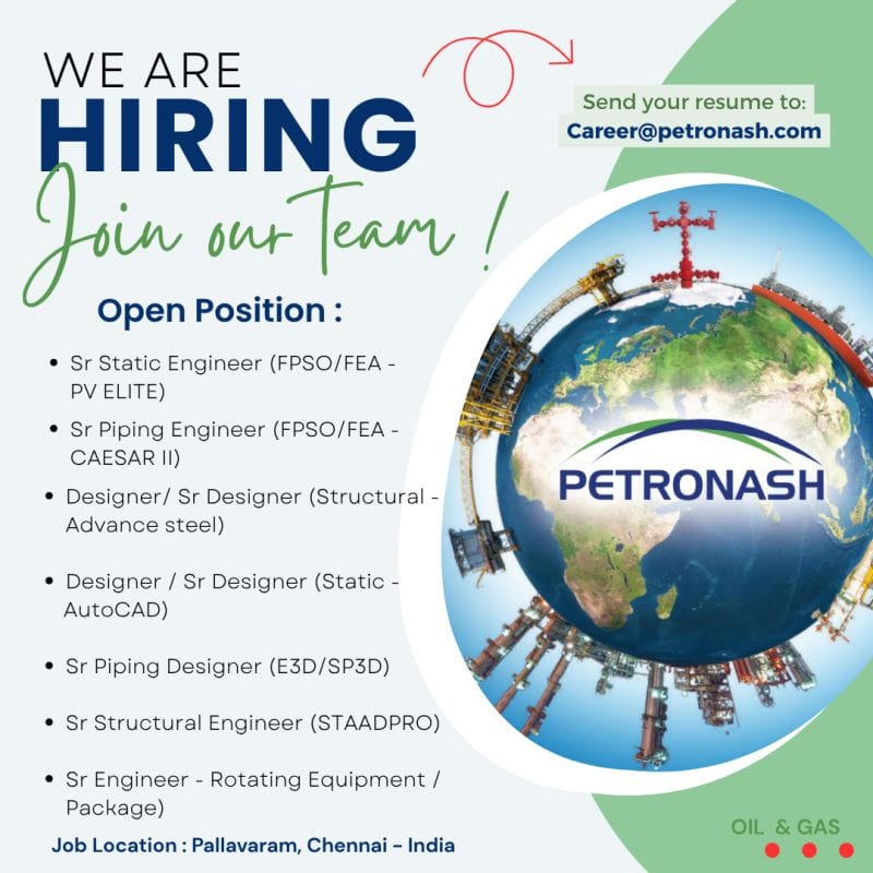 Petronash is expanding its team and is looking for skilled engineers and designers in the Oil & Gas sector. This is a great opportunity to work on challenging projects in Chennai, India.