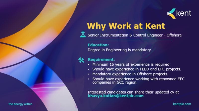 Kent is seeking an experienced Senior Instrumentation & Control Engineer for offshore projects. If you have a strong background in FEED and EPC projects, particularly in the GCC region, this could be your next big move.